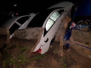 بالصور انهيار حائط دعم وتضرر عدد من السيارات طريق مغدوشة ،