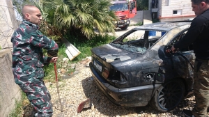 فوج إطفاء بلدية صيدا يقوم باخماد حريق سيارة BMW سوداء اللون في محلة مار الياس
