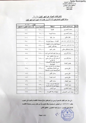 بلدية صيدا عممت جداول تسعيرة إشتراكات المولدات الكهربائية عن شهر ايلول 2018