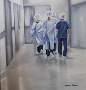 نسرين شبيب تحيي الطواقم الطبية من خلال ريشتها