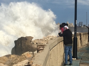 بالصور مواطنون يتحدون الامواج العالية في صيدا