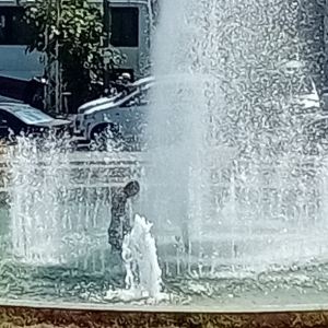 عدد من الأطفال على السباحة في النافورة العامة وسط درجات حرارة
