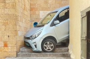 بالصورة سيارة تعلق على درج بسبب Go.ogle Maps في عين المريسة