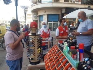 توعية من الصليب الأحمر حول "كورونا" في أسواق صيدا!