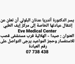 الدكتورة أندريا عدنان البلولي تعلن عن انتقال عيادتها الخاصة إلى مركز إف الطبي