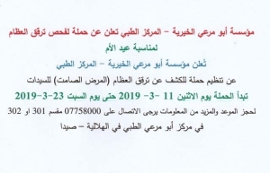 مؤسسة أبو مرعي الخيرية - المركز الطبي تعلن عن حملة لفحص ترقق العظام