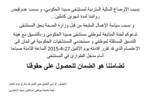 المصدر: لجنة المتابعة لموظفي مستشفى صيدا الحكومي