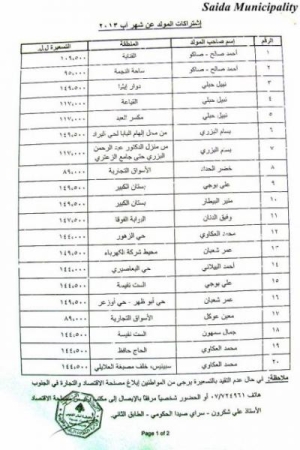 بلدية صيدا عممت جداول شهر آب لتكلفة إشتراكات المولدات الكهربائية