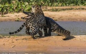 بالصور .. نمر أمريكي يقتل تمساحاً استوائياً بعد معركة شرسة