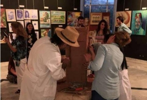 نحت فوري ضمن فاعليات معرض "أياد من ذهب" في مركز معروف سعد