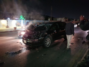 بالصور: تدمير مقدمة سيارة و السبب حصاناً على الكورنيش البحري لمدينة صيدا