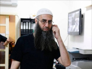 بالصور الأسير جلس على المقعد بعباءته الرمادية الفاتحة، معتمراً قلنسوة بيضاء.