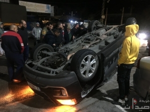 بالصورة حادث سير انقلابه رأساً على عقب في البستان الكبير في صيدا