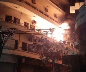 حريق داخل مقهى،في بناية البربير ومعالجة مصاب ميدانيا