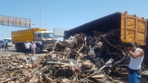انقلاب شاحنة محملة (بالخردة ) فوق جسر سينيق