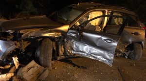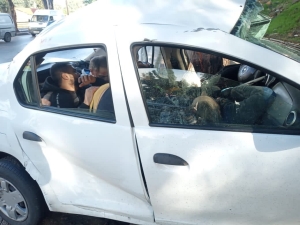 صدمت شاحنة كبيرة سيارة رباعية في شارع د نزية البزري لمدينة صيدا بداخلها أم وثلاثة أطفال.