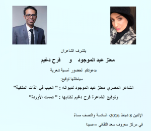 يتشرف الشاعران معتز عبد الموجود وفرح دغيم