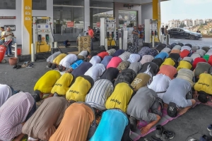 بالصور مواطنون يؤدون صلاة الجمعة في محطة وقود وصرخة باسم اللبنانيين" الله يستر من اللي جاي"