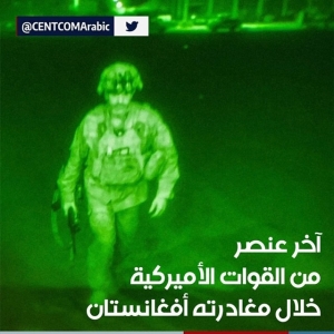 قيادة الجيش الأميركي تنشر صورة آخر عنصر من القوات الأميركية خلال مغادرته لأفغانستان..