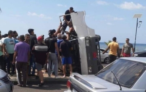 بالصور: ١٤ جريح نتيجة انقلاب فان على الكورنيش البحري لمدينة صيدا