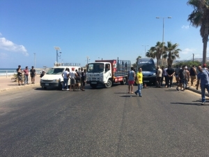 قطع الطريق عند الكورنيش البحري لمدينة صيدا احتجاجا على عدم فتح