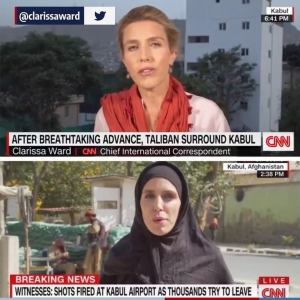 بلباس أسود.. مراسلة "سي إن إن" قبل وبعد دخول طالبان إلى كابل