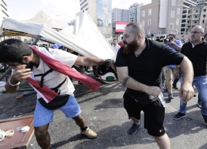 بالصورة والفيديو محاولة خلغ بوابة بلدية صيدا من قبل المتظاهرين