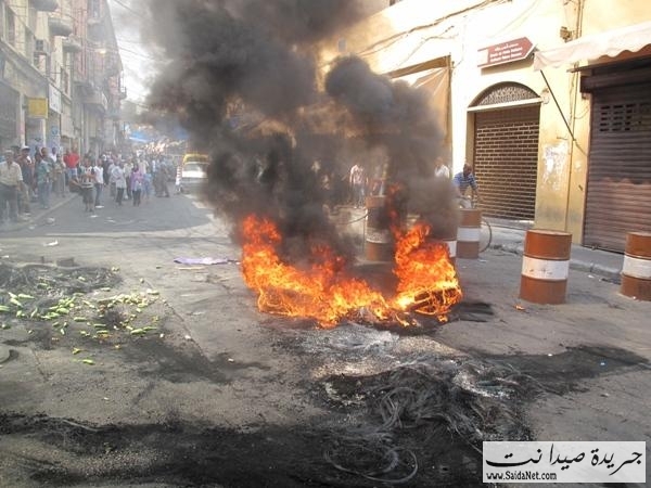 إحتجاجاً على قرار بلدية صيدا بمنع إستمرار وجود عربات الخضار الجوالة في السوق وبناء للقرار الذي إتخذته بلدية صيدا بهدف تنظيم مهنة الخضار، وبعد إيجاد مكان مناسب لهم قرب سبينس قررت البلدية تنفيذ قرار المجلس البلدي بمنع وقوف العربات في سوق الخضار وكافة شوارع مدينة صيدا. غير أن أصحاب العربات الرافضين للقرار عمدوا الى احراق الدواليب وقطع طريق مثلث سوق الاوقاف شارع الشهداء والمطران وقاموا برمي الخضار في الشوارع منذ ساعات قليلة صباح اليوم.