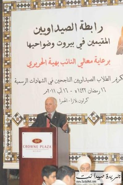 برعاية رئيسة لجنة التربية والثقافة النيابية النائب بهية الحريري ممثلة بمنسق عام تيار المستقبل في الجنوب الدكتور ناصر حمود ، كرمت رابطة الصيداويين المقيمين في بيروت وضواحيها الطلاب الصيداويين في العاصمة الناجحين في الشهادات الرسمية وذلك في حفل افطار اقامته الرابطة في فندق كراون بلازا – بيروت ، شارك فيها الى جانب الدكتور حمود ، منسق عام تيار المستقبل في بيروت العميد محمود الجمل ، ورئيسة جمعية نساء المستقبل ليلى الترك ، واعضاء مجلس منسقية الجنوب " المحامي محيي الدين الجويدي وامين الحريري ورمزي مرجان".