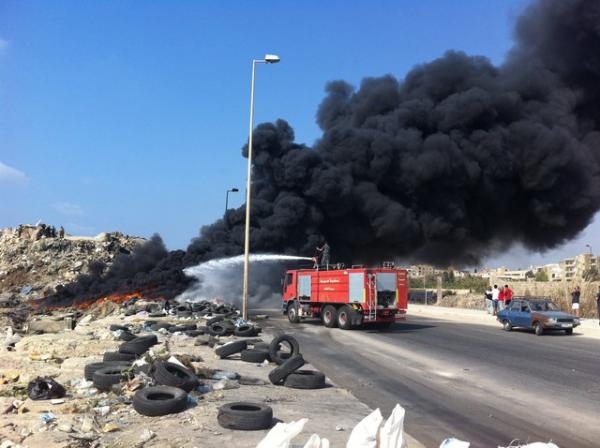 حريق في جبل النفايات شاهد الصور