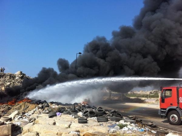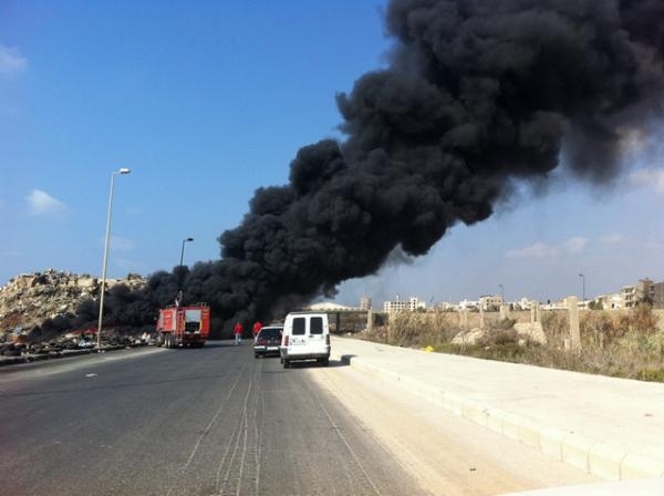 شب حريق ظهر اليوم على جبل النفايات بسبب ارتفاع الحرارة وتفاعل النفايات والزجاج والبلاستيك مما ادى الى اشتعال النيران وعلى الاثر تدخلت سيارات الاطفاء وعمدت على اخماد الحريق بعد ارتفاع سحب الدخان الاسود.