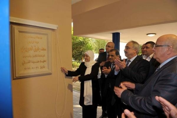 وبعد جولة على ارجاء المهنية ، تفقدت الحريري والحجار ودياب والسعودي سير العمل في مشروع المدرسة العمانية الذي ينفذ حاليا في جوار المهنية .