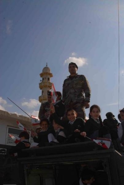بعد ذلك وزعت حامية الموقع على التلامذة الحلوى والأعلام اللبنانية وشعار الجيش (شرف – تضحية – وفاء ) .