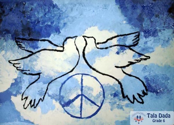 وتتضمن لوحة تلا الددا الفائزة بالمرتبة الأولى في المسابقة في لبنان رسما لحمامتي سلام متقابلتين وبينهما شعار السلام العالمي .