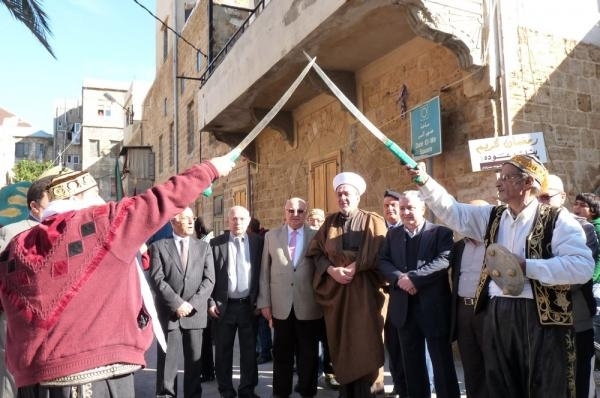 وقد إستقبلت فرق النوبة والزاوية الرفاعية وفرقة السيف والترس بقيادة أبوعيسى المفتي سوسان والسعودي والشخصيات بعروض للسيف والترس في ساحة رجال الأربعين قبل الدخول إلى المسجد للإحتفال بالذكرى.