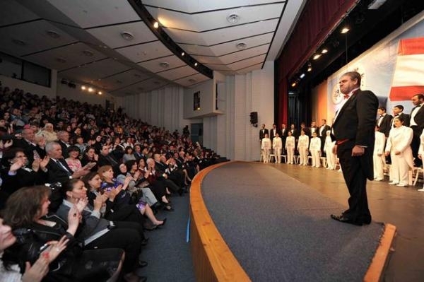 وفي الختام قدمت مديرة البهاء وداد النادري بمشاركة حمود والقطب وقبرصلي وبواب درع تكريمية بإسم المدرسة الى المايسترو تسلاكيان الذي توجه بالتحية الى النائب الحريري والى مدرسة البهاء على هذه البادرة .