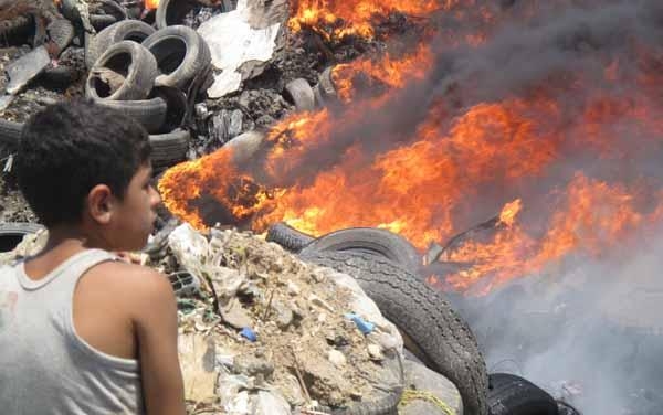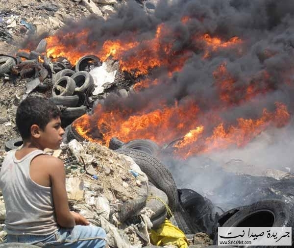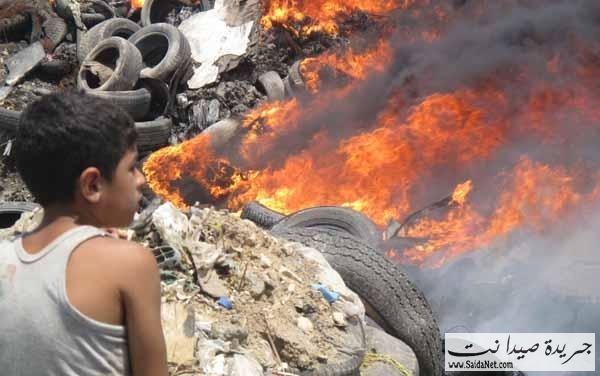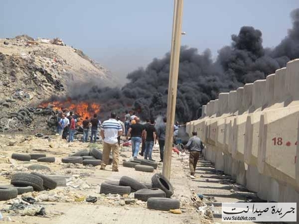 أقدم مجهولون مشاغبون على حرق مئات الإطارات المستعملة عند مكب النفايات في مدينة صيدا، مما ادى إلى تكاثف سحب الدخان الأسود الذي غطى سماء المدينة. وقد أدى إلى اشتداد الحريق سرعة الرياح الجنوبية الغربية التي تهب في المدينة. وعلى الأثر تحركت سيارات الإطفاء بلدية صيدا والدفاع المدني التي تعمل جاهدة على إطفاء الحريق