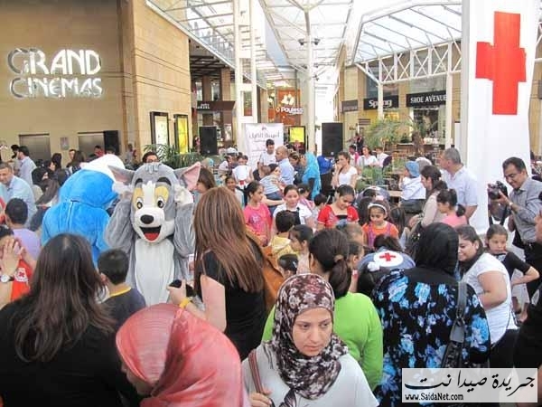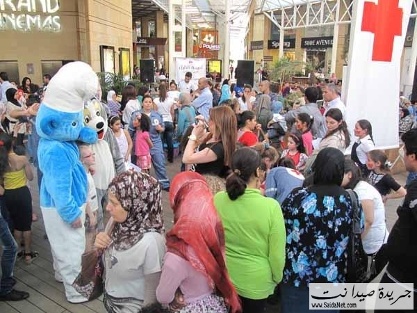 أقام مجمع صيدا مول التجاري نشاطاً إنسانياً للصليب الأحمر اللبناني بعد عصر يوم الجمعة، تخلله رسومات على وجوه الأطفال من أشخاص يرتدون ملابس السنافر التنكرية، كما قدمت فرقة الدبكة اللبنانية عروضاً جميلة مرتدين قمصان الصليب الأحمر ورافعين الأعلام اللبنانية. بعد ذلك جرى سحب تمبولا بجوائز مقدمة من المؤسسات التجارية. كان ضيف الحفل الذي استمر لساعتين الإعلامي ميشال قزي ومسؤولين في الصليب الاحمر اللبناني فرع صيدا والجنوب بالإضافة إلى مديرة مجمع صيدا مول السيدة ميساء حنوني التي أكدت على أهمية دور الصليب الأحمر اللبناني في عمله الإنساني الذي يعتبر بلسماً للجراح اللبنانية وأن مجمع صيدا مول يفتخر بهذه النشاطات التي يقوم بها الصليب الأحمر، وكما عودنا أهلنا إن صيدا مول ليس مركزاً تجارياً فحسب بل هو ايضاً مركزاً ترفيهياً ومفتوح لكل المؤسسات التي تهتم بالعمل الإنساني. وقد حضر هذا الحفل حشد من الجماهير الصيداوية من عائلات وشباب وأطفال.