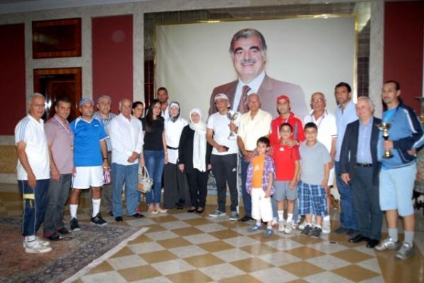ثم جرى توزيع الكؤوس على الفائزين حيث قدمت الحريري كأس المركز الأول الى اللاعب محمد سبليني ، وكأس المركز الثاني الى اللاعب حسن بوجي ، وكأس الدورة الى زوجة واسرة المرحوم الحاج علي البربير الذي تحمل الدورة اسمه . كما وزعت الحريري الميداليات على اللاعبين المشاركين في الدورة.