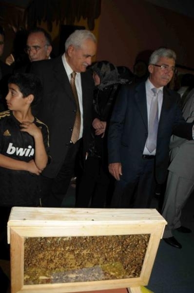 ثم جرى افتتاح معرض النحل الذي يتضمن معلومات قيمة عن حياة النحل وتربيته ومراحل انتاج العسل ، بالتعاون مع مؤسسة جواد المتخصصة في هذا المجال ، واستمعوا من الطلاب الى اهمية وكيفية تربية النحل وانتاج العسل.