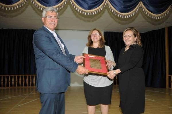 وفي الختام ، قدم رئيس المدرسة نحولي بمشاركة المديرة خليفة درعا تكريمية الى المعلمة ماجدة خليفة تقديرا لجهودها في مجال تعزيز الأنشطة البيئية والتربوية في المدرسة .