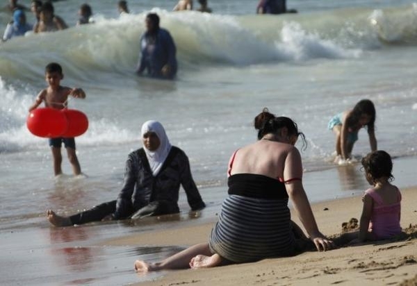 الناس و الطقس الدافئ على شاطئ في مدينة صيدا الساحلية في جنوب لبنان 24 يونيو 2012.