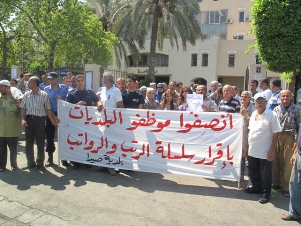 نفذ موظفو وأجراء بلدية صيدا إعتصاما سلميا لهم أمام القصر البلدي في مدينة صيدا للمطالبة بإقرار سلسلة الرتب والرواتب .
