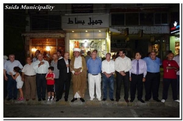 وكان في إستقبال المسيرة في شارع رياض الصلح مفتي صيدا واقضيتها الشيخ سليم وسان، ورئيس بلدية صيدا المهندس محمد السعودي، وممثل النائب السيدة بهية الحريري منسق عام تيار المستقبل في الجنوب الدكتور ناصر حمود، المسؤول السياسي للجماعة الإسلامية في الجنوب الدكتور بسام حمود، ممثل رئيس جمعية تجار صيدا السيد علي الشريف نائبه السيد محمد القطب ، وأمين المال في الجمعية السيد محمود حجازي وأعضاء المجلس البلدي: السيد نزار الحلاق والمهندس علي دالي بلطة والمهندس محمود شريتح والمهندس محمد البابا والأستاذ كامل كزبر والحاج حسن الشماس، وجمع من الشخصيات .