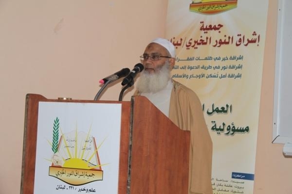 ثم ألقيت كلمة سماحة المفتي الجوزو , ألقاها الشيخ أحمد الخيال ,الذي شكر بدوره الجمعية مبديا إعجابه الشديد بالنشاطات الخيرية التي تقوم بها الجمعية في لبنان عموما وفي الإقليم خصوصا , وتحدث الشيخ في كلمته عن الأجر الكبير الذي يلاقيه الساعي على الأيتام والفقراء.