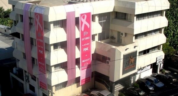 هذا وقد ازدان مبنى الجمعية باللون الوردي الذي يرمز إلى حملة مكافحة سرطان الثدي.