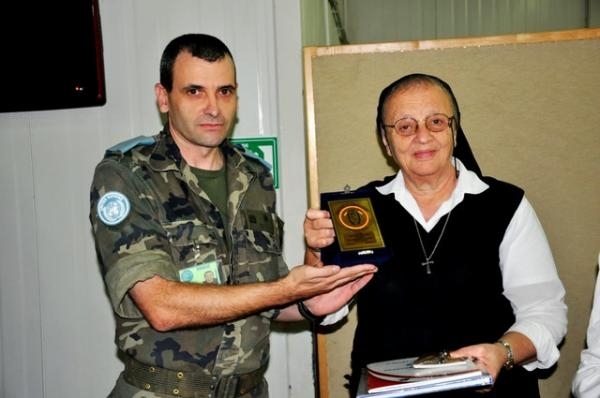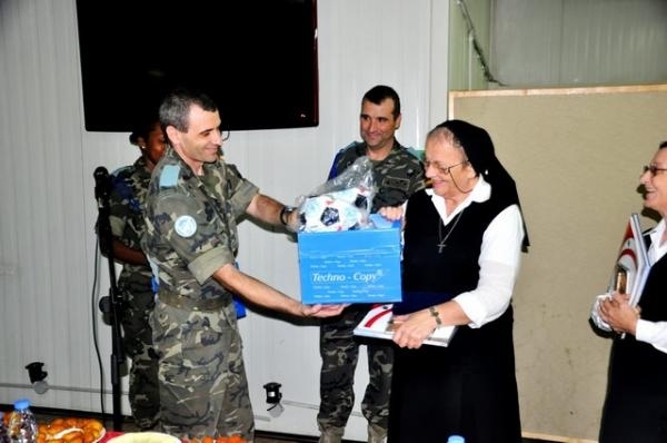 وفي ختام الجولة أقيم لقاء في قاعة القاعدة قدم خلاله طلاب رقصات فولكلورية لبنانية وأغاني وطنية ، كما أدى ثنائي عسكري اسباني رقصة من التراث الاسباني ، بعد ذلك قدمت الاخت عاقلة باقة ورد ودرع تقديري للرائد دوبيت، الذي بادلها بتقديد هدايا رمزية وكتاب عن مهمات الكتيبة الاسبانية، ثم أقيم حفل كوكتيل.