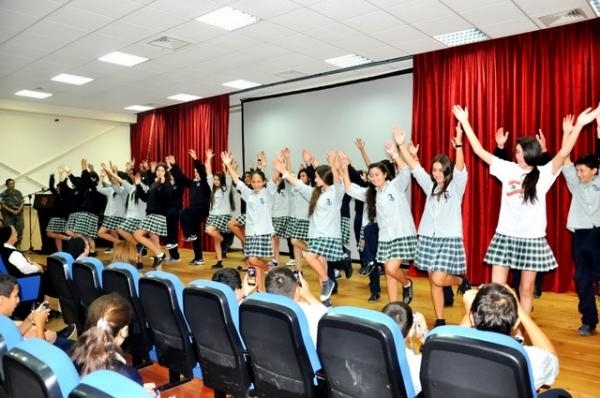وكان لافتا ارتداء التلامذة لقمصان عليها العلمان اللبناني والاسباني معبرين عن حبهم لاسبانيا والتلاقي بين الحضارتين المتقاربتين.