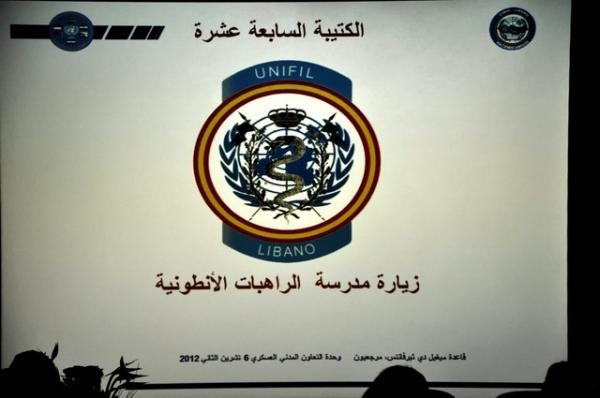 ضمن سلسلة الزيارات التثقيفية والتربوية التي تنظمها "ثانوية السيدة للراهبات الانطونيات في النبطية" لتلامذتها، أستضافت الكتيبة الاسبانية العاملة في اطار قوات اليونيفيل في جنوب لبنان قاعدة "ميغيل دي ثربانتس" في سهل إبل السقي- مرجعيون تلامذة من المرحلة المتوسطة للتعرف الى عمل عناصر حفظ السلام والمهمات التي يقومون بها في جنوب لبنان.