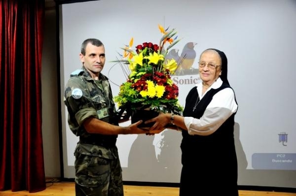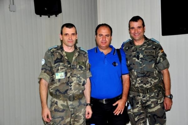 وقال: ان الكتيبة تنفذ سلسلة من النشاطات والبرامج الانسانية، منها برنامج تعليم اللغة الاسبانية بالتعاون مع معهد ثرفانتس والذي يضم اليوم 132 تلميذا من 12 بلدة في 8 مراكز، ويقوم بتدريسهم 37 استاذا من عناصر الكتيبة المتطوعين. كما ذكر القواسم المشتركة الكثيرة بين لبنان واسبانيا ومنها زيت الزيتون والنبيذ.